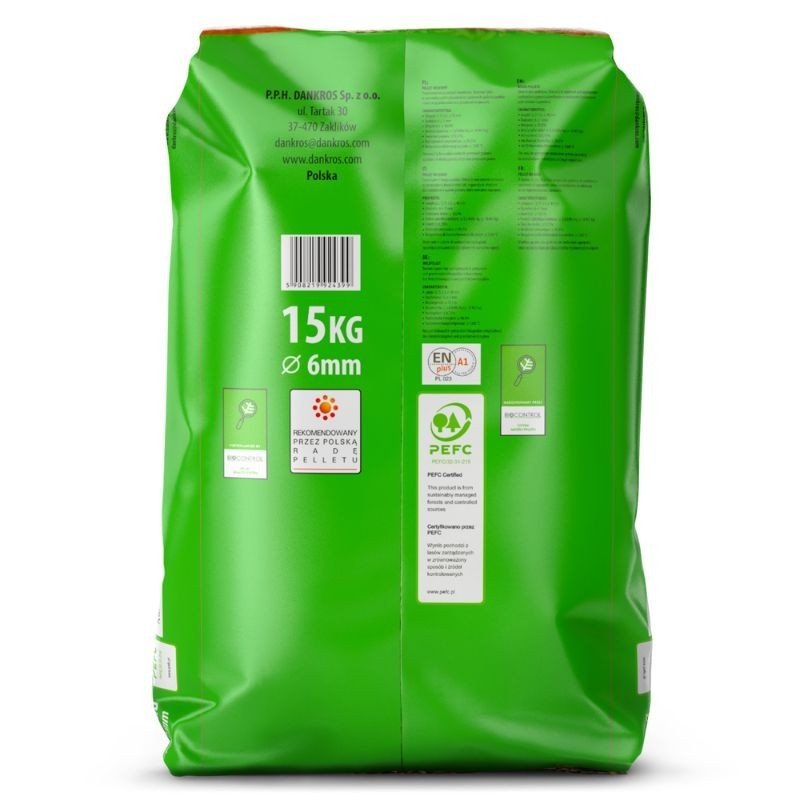 Dankros – pellet bardzo wysokiej jakości, który jest w czołówce najlepszych pelletów w Polsce. Posiada najwyższe parametry jakościowe potwierdzone certyfikatem EN Plus A1. Produkowany w 100 % z czystej trociny sosnowej. Produkt cechuje wysoka wartość opałowa.